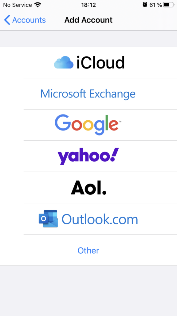 3. Add account in izberite Other