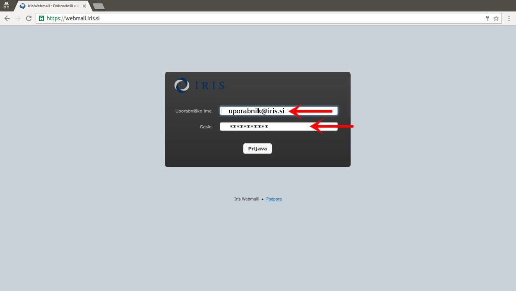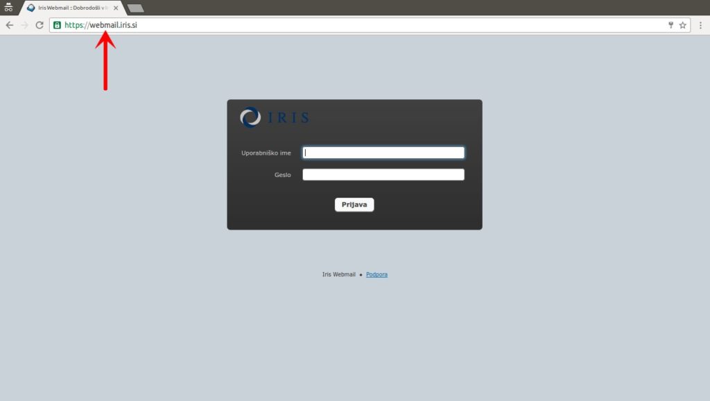 - Odprite brskalnik na naslovu https://webmail.iris.si