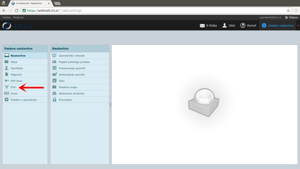 1. Opravite prijavo v vaš webmail račun. Navodila kako to storite, si lahko preberete v članku Webmail